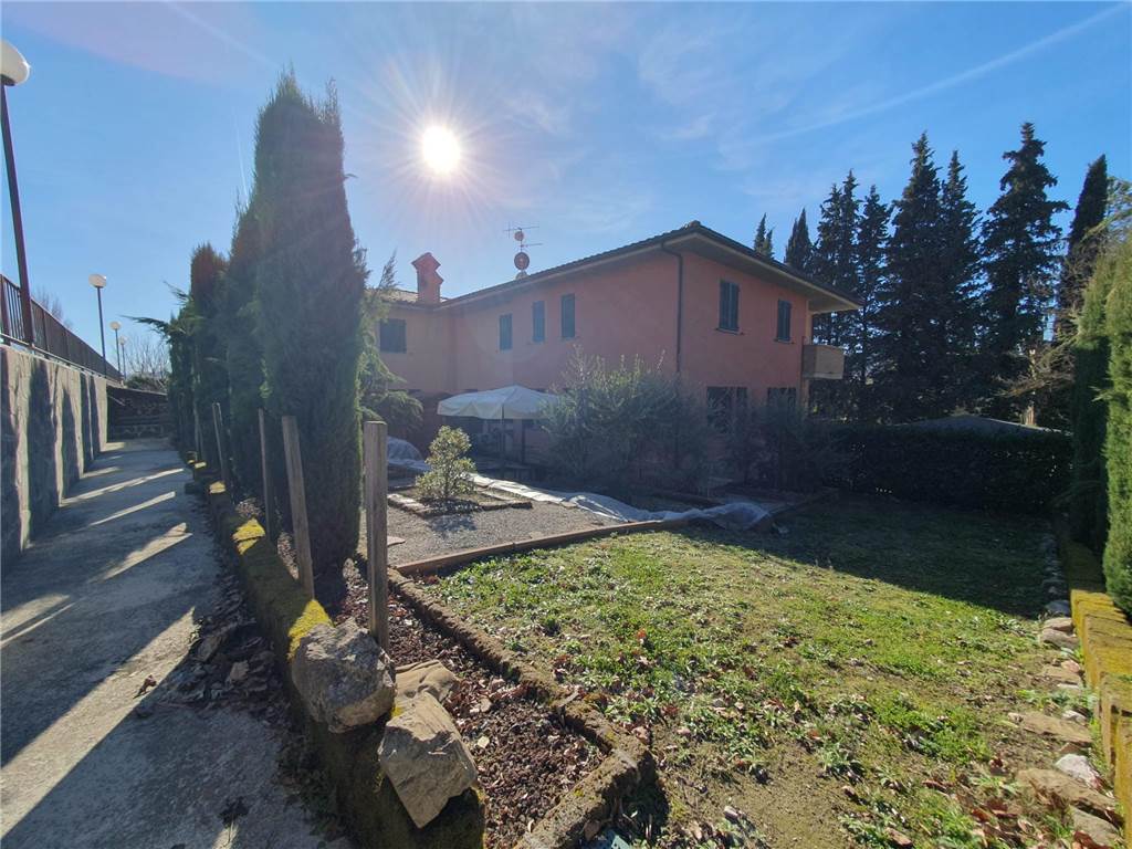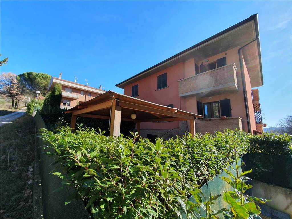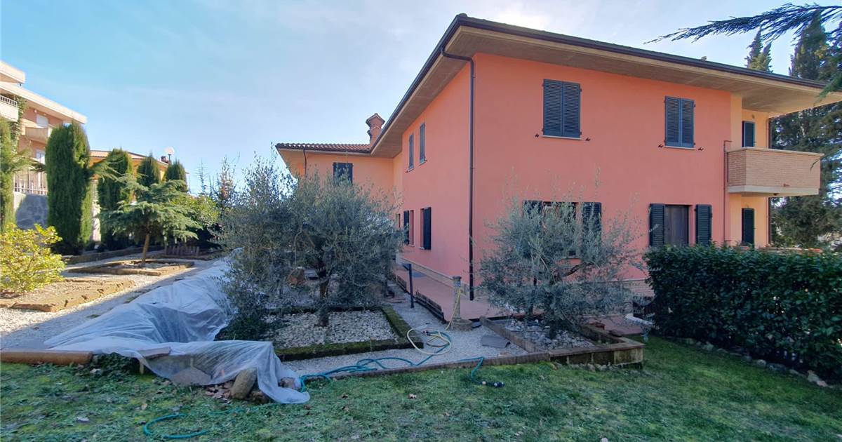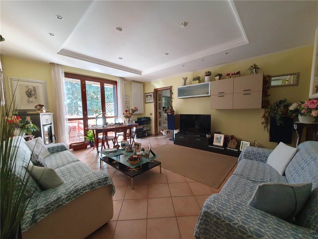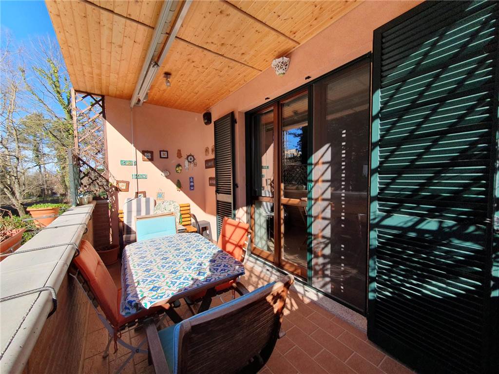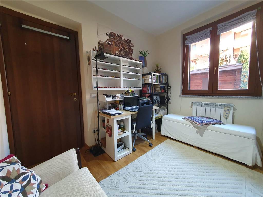 L' unità abitativa è composta da: cucina, ampio soggiorno con accesso al terrazzo, due camere matrimoniali, studio e due bagni. Ad impreziosire la proprietà, splendido giardino terrazzato, finemente curato, gazebo in legno e locali pertinenziali al piano terra adibiti ad autorimessa e magazzino con lavanderia.